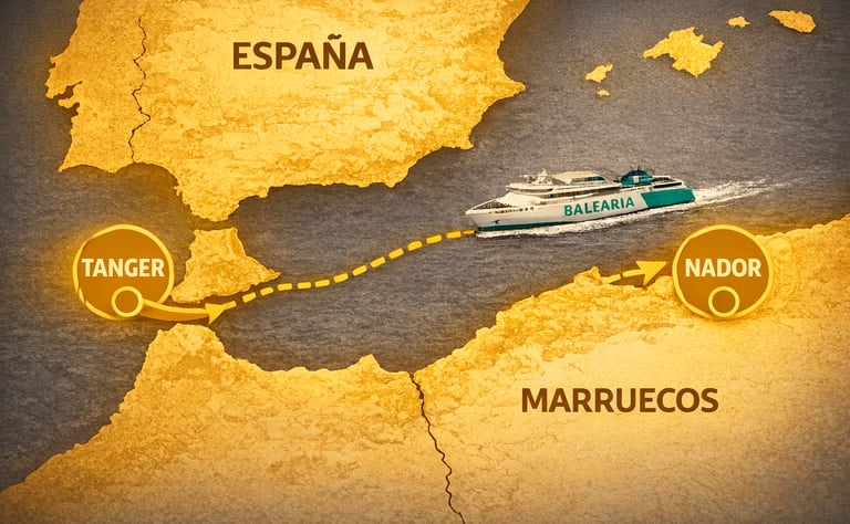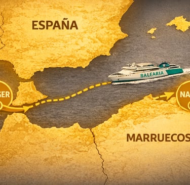 Día 1 Sábado 10 octubre. Arrancamos con el momento que ya pone la piel de gallina: ferry desde Algeciras y cruce del Estrecho rumbo a Tánger. Trámites de aduana,